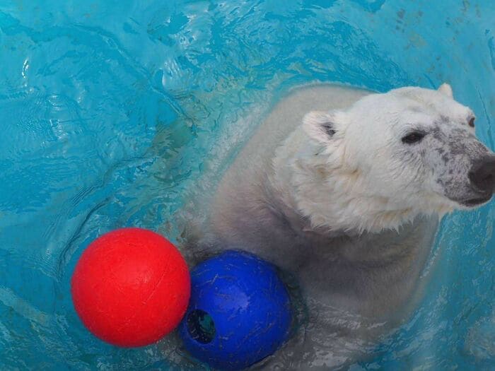 雪の上で寝転んだり、泳いだりかわいらしい姿を見せるマルルがよく遊んでいるおもちゃがこちらの「浮き球」。