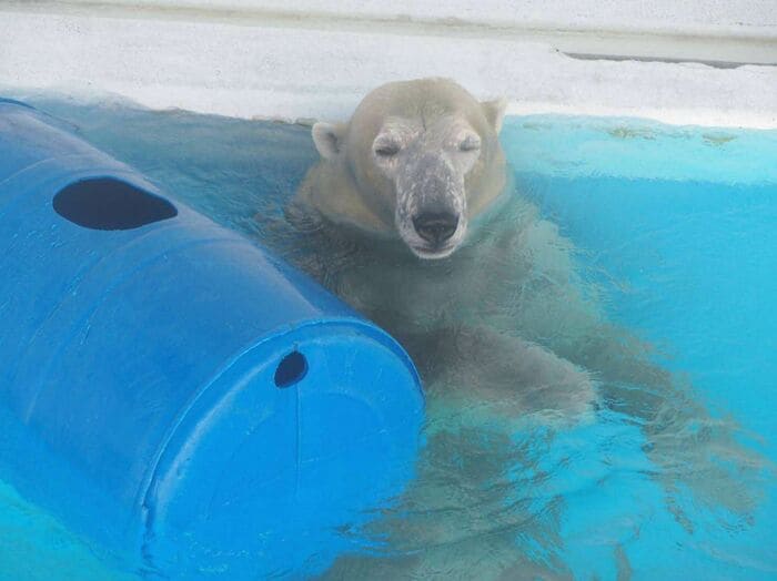 熊元県にある熊本市動植物園で暮らすホッキョクグマのマルル。