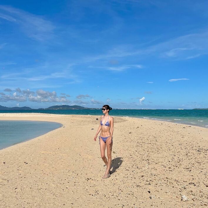 マギーさんは水着姿で海を眺める様子や砂浜を歩く様子などSNS映えの写真をいくつか投稿しています。