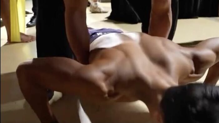試合が始まるまで、腕立て伏せをしてギリギリまで鍛えます。