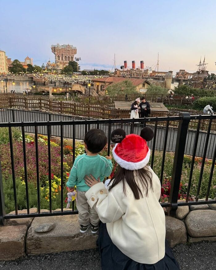 今回の投稿では、「念願の…クリスマスディズニー ハロウィンの時から、ママと行きたいと言ってくれていた息子。。。臨月時期だったので我慢したよなぁと 妹を可愛がってくれる優しいちぇちぇくんのご要望にお応えしてクリスマスディズニーに行ってきました」と、長男らと念願のクリスマスディズニーに行ったことを報告し、楽しむ様子を披露しています。