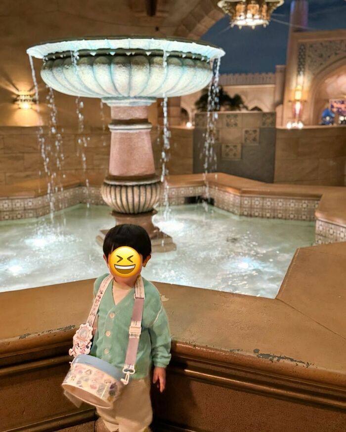 東京ディズニーシーのレストランで撮影された写真では、手前に長男の小さな手が写り、その奥には満面の笑みの舟山さんの姿が。