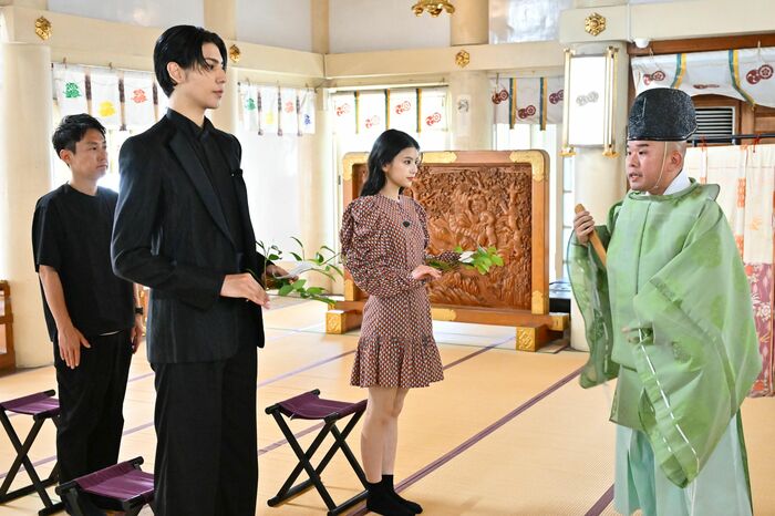そんなご利益がある本神社で、ラウールさんと出口さんは、本殿でのご祈祷に参加。神主からのご祈祷を受け、赤羽骨子(出口)を守るために奮闘する、威吹荒邦(ラウール)をはじめとしたクラスメイト兼ボディガード全員の勝利と、映画の大ヒットを祈願しました。