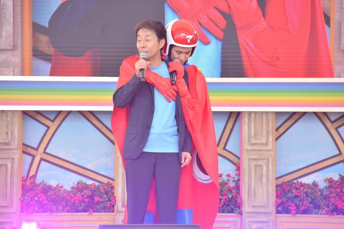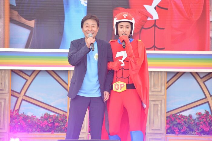 7月20日、東京・お台場のフジテレビ本社屋、お台場・青海周辺エリアで開催する夏の超大型イベント『お台場冒険王2024~人気者にアイ♡LAND~』の開幕を飾るオープニングセレモニーに、イベントのメインキャラクターを務めるマッサマン(Snow Man・向井康二さん)が登場しました。