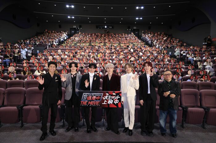 『逃⾛中 THE MOVIE』が7月19日に公開初日を迎え、初日舞台挨拶を開催。メインキャストを務めた川西拓実さん、佐藤大樹さん、中島颯太さん、木全翔也さん、金城碧海さん、瀬口黎弥さん、⻄浦正記監督が登壇しました。