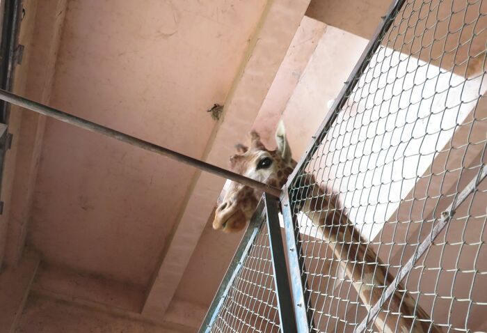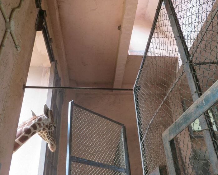 このキリンの獣舎にツバメが巣を作ったのは、初めてだそう。