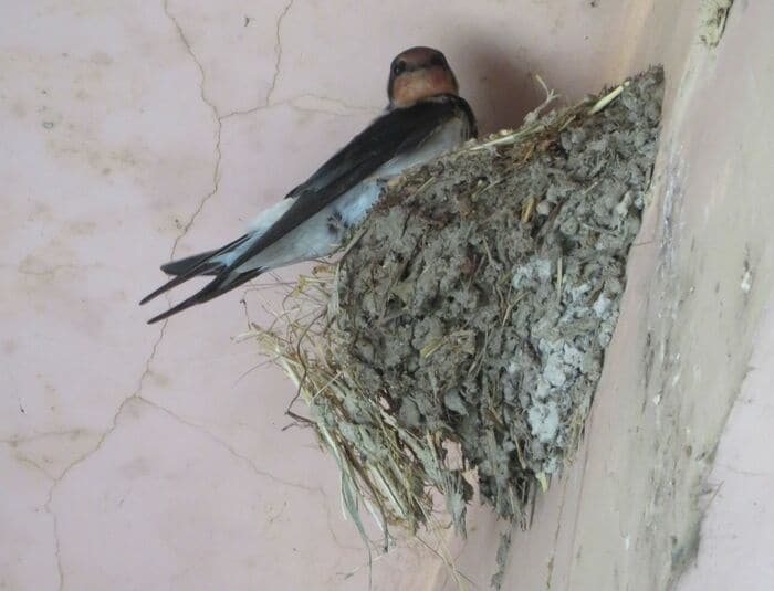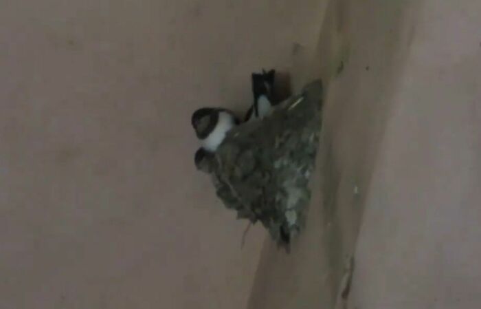 なんと、巣を作ってぬくぬく過ごしている、小さなツバメが!