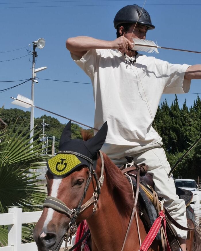 また、馬に乗りながら的を射る、「流鏑馬(やぶさめ)」の様子も。