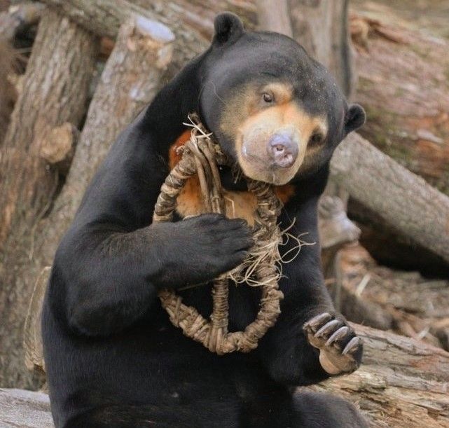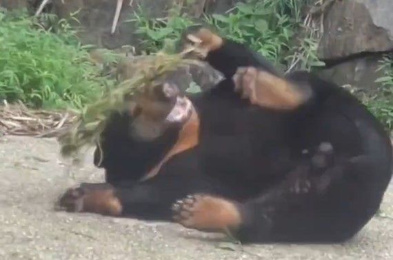 大興奮でブルンブルン!マレーグマ「マーチン」がお手製リースに夢中!