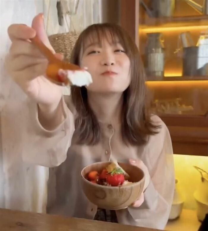 その後、カメラに向かってスプーンを持ってきて「あーん!」と食べさせてくれるような様子も!
