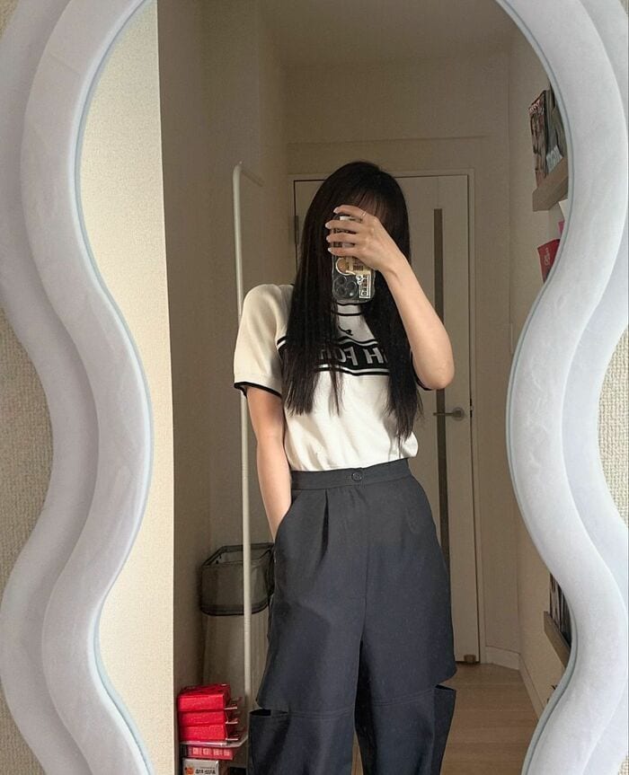 また、自身の部屋とみられる場所では、全身鏡を使って自撮りショットも!