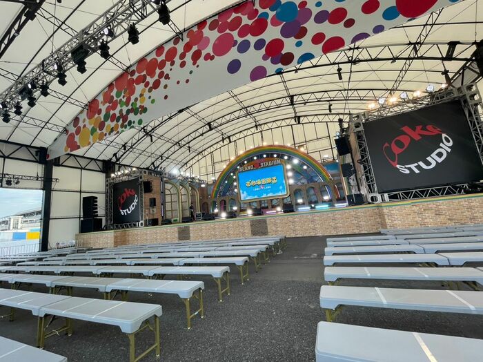 こちらには、日差しを遮る屋根は無いため、帽子を被ったりこまめな水分補給をするなどして体調に気をつけながらライブを楽しみましょう!