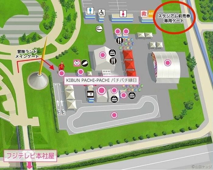 『めざましライブ』が行われるのは、フジテレビ本社から歩いて10分ほどの場所にある『冒険ランド』!