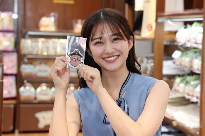 夏らしい日焼けしたうさぎのクリアステッカーがお気に入りだという原田アナ。