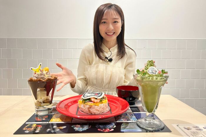小腹がすいた方には、五目ちらしはいかがでしょう?「お皿の色がお寿司を映えさせてますね。上にピカチュウがいます!」と佐久間アナ。
