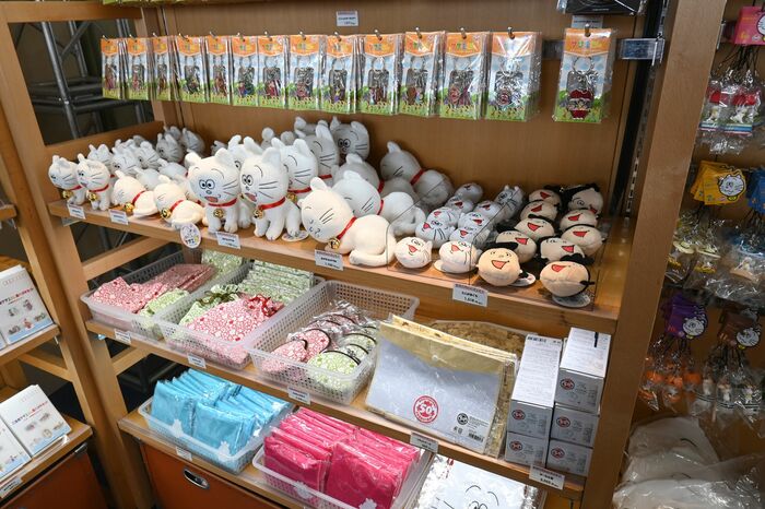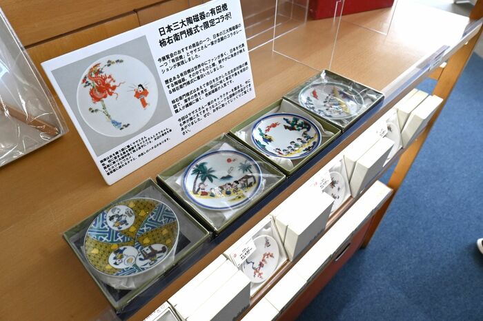 また、「あさひが丘スーパー」ではアニメ55周年を記念した巡回展限定グッズも。レトロでかわいい「ちりめん巾着」(2530円)、「たまのご当地ストラップ」(825円)、「たまの季節ストラップ」(880円)といった定番グッズはもちろん、「バカラグラス」(55,000円)、「有田焼の豆皿」(1430円)など、さまざまなコラボ商品もラインアップ。