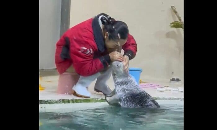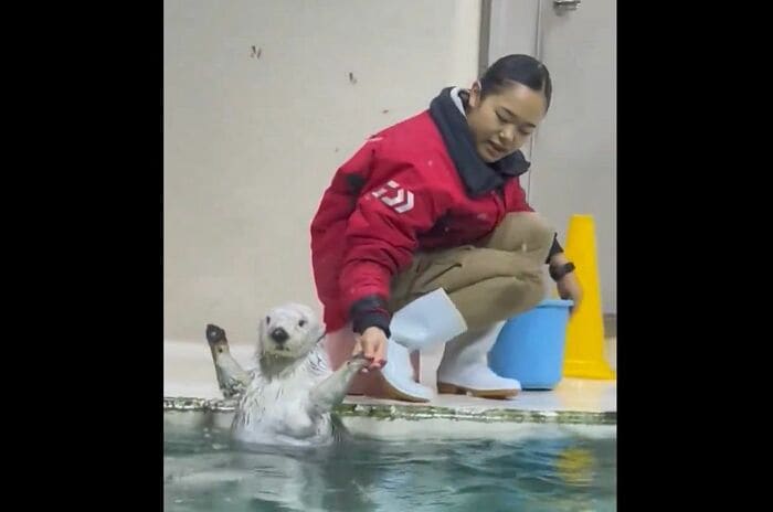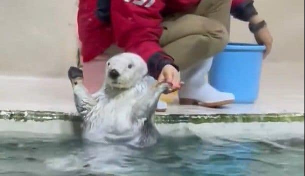 水族館によると、前脚を上げるのはショーやパフォーマンスのためではなく、健康管理の一環として行われているトレーニングということです。
