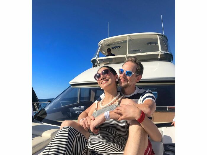 また、サングラスをかけて船に乗り、ミラー氏からバックハグをしてもらっているショットも。