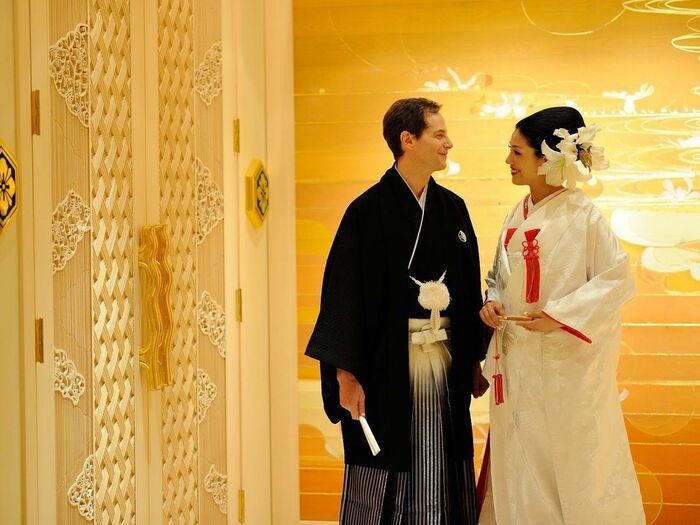 他にも、白無垢姿のアン ミカさんと羽織袴姿のミラー氏が見つめ合うショットや…
