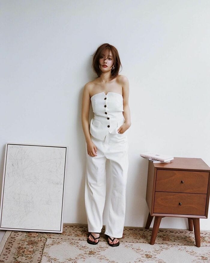 白で統一されたコーディネートで、シックな部屋にたたずむ谷さんからは大人の魅力があふれ出ています。