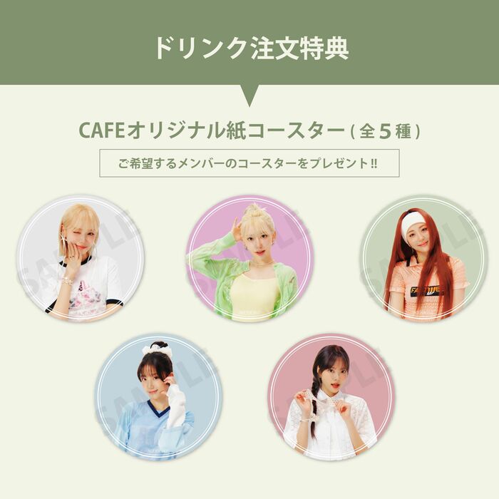 ドリンクメニューをご注文すると希望のメンバーのコースターを1品につき1枚プレゼントされます。