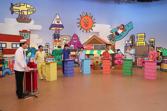 博多華丸さん、博多大吉さん、千鳥(大悟さん、ノブさん)、山内健司(かまいたち)さんを含めた6人が、お題に対して各自ベストアンサーだと思う回答を出し、プレゼン合戦。