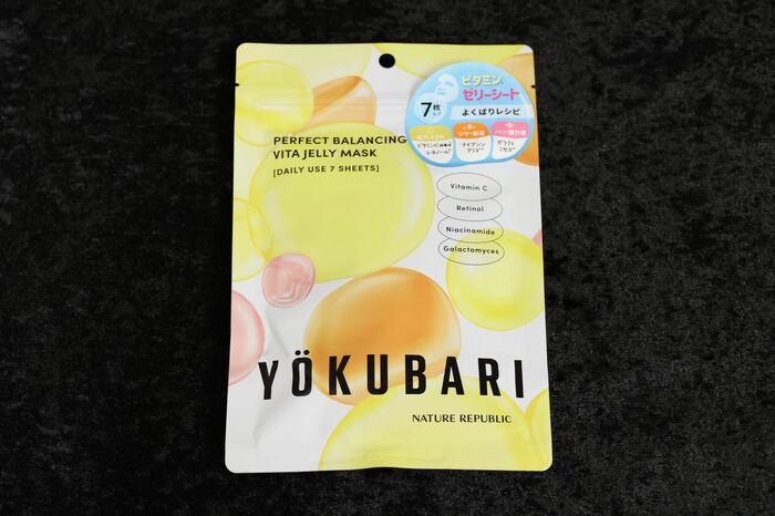 他には、ビタミンとかレチノールとかナイアシンアミドとかいろんな成分が入っている「NATURE REPUBLIC(ネイチャーリパブリック)」の「パーフェクトバランシング ビタミンゼリーマスク」も使っています。