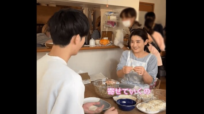 番組公式Xでは、福の弟・幸(野村)と母・晴美(石田)が餃子を作るシーンのオフショット動画が紹介されています。