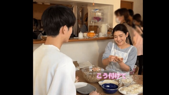 撮影前に石田さんが「(水を)こう付けて、(皮を)寄せていくの」と餃子の包み方を丁寧に教え、スタッフも野村さんの隣でコツをレクチャー。野村さんは「なるほど」とつぶやきながら、一生懸命、餃子を包んでいました。