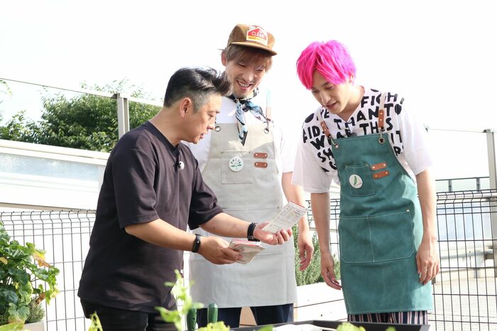 種にも水をかけて、という野菜のプロのアドバイスもお構いなしに、水をかけ続けたりんたろー。さん。EXITの種まきは、おおはしゃぎのうちに終わりました。