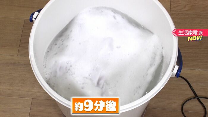 汚れたTシャツを洗濯機に入れ、約9分待てば…