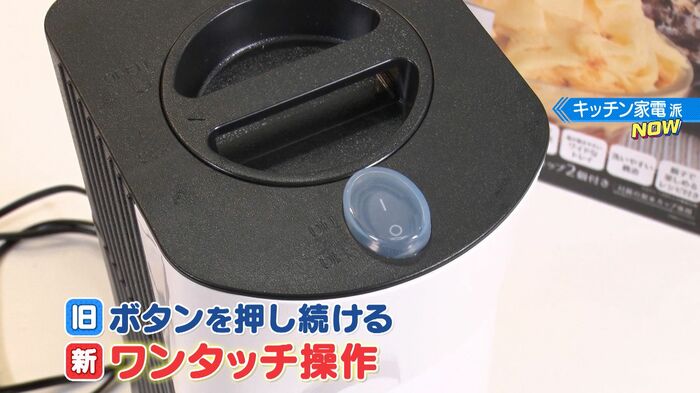 旧型モデルではボタンを押し続ける仕様だったのが、新モデルではワンタッチ操作で氷を削れるように。誰でも簡単にふわっふわのかき氷が作れちゃいます。