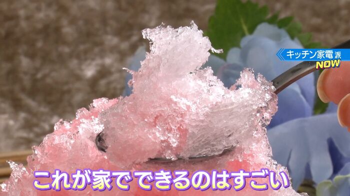 「うわ〜ふわふわです。確かにガリガリしていない。これが家でできるのはすごい」と、できあがったかき氷を口に運びながら感動の声を上げました。