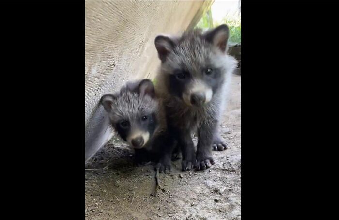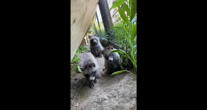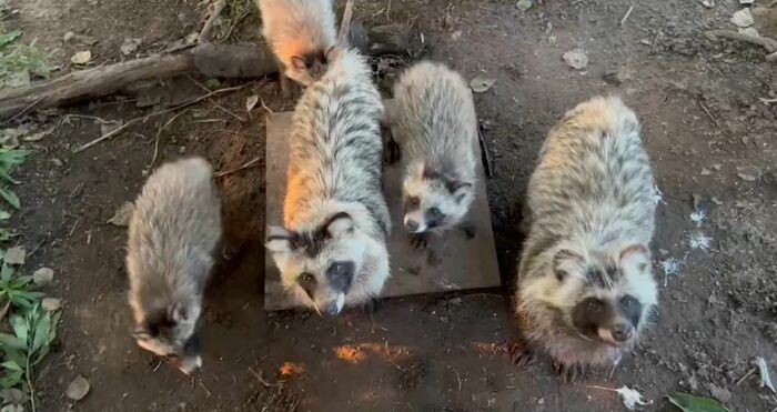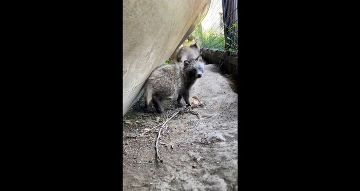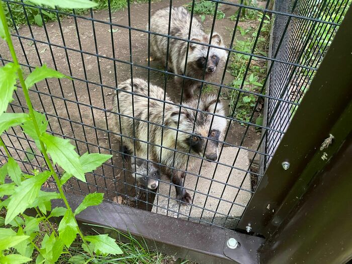 顔回りの模様や毛並みも整ってきた、生後約2カ月のエゾタヌキの子供たち。