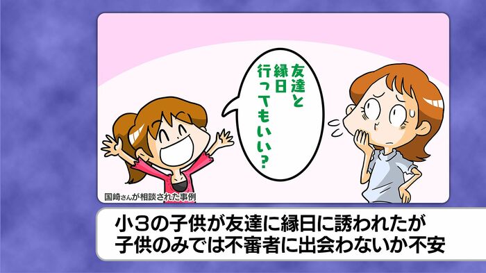 「小3の娘が友達から縁日に誘われたのだが、不審者が心配。どこに気をつけたらいい?」という、母親からの相談も紹介されました。