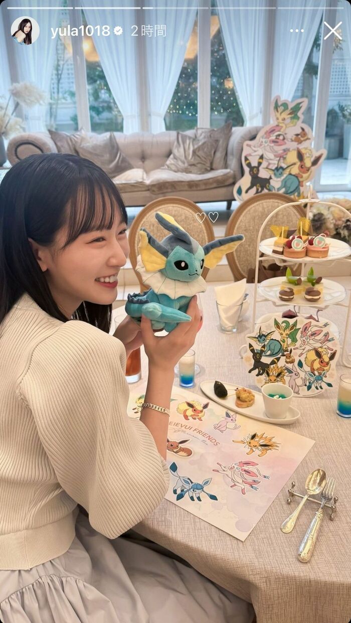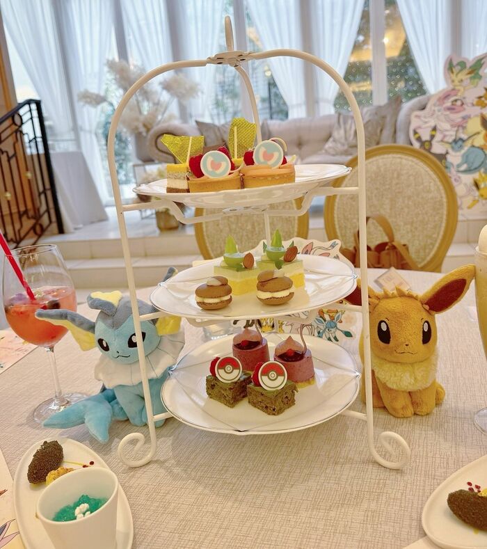 藤田さんは「ずっと前から予定組んでいた」という、ポケモンの“イーブイ”とその進化形のキャラクターたち“イーブイフレンズ”をモチーフにしたアフタヌーンティーへ行ったことを明かしました。