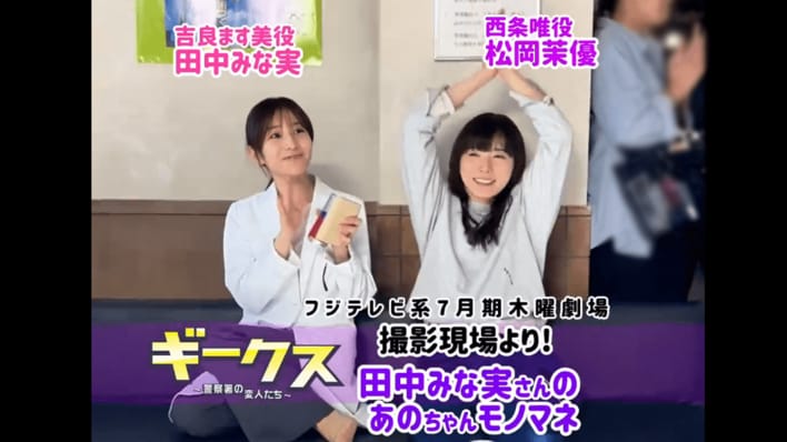 松岡茉優さん主演の木曜劇場『ギークス~警察署の変人たち~』の番組公式Xが更新。本作に出演している田中みな実さんが、共演のあのさんのモノマネを披露し話題となっています。