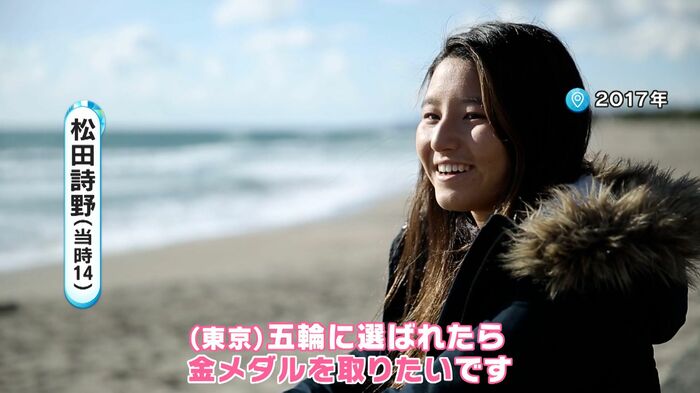 オリンピックに出場して「金メダル」という夢を抱いた松田選手は、自宅から5分の海で技を磨いて、2019年 条件付きで東京オリンピック代表に内定します。