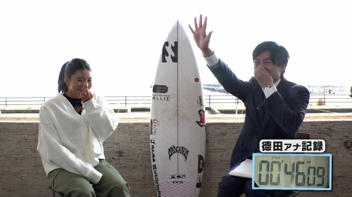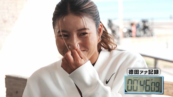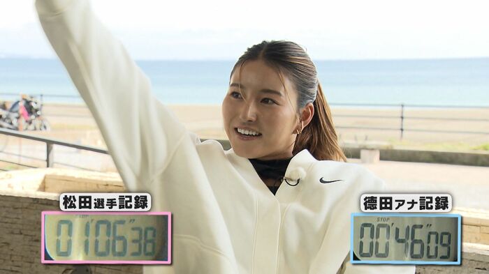 松田選手は、苦しそうな德田アナを見て笑いをこらえながらも…