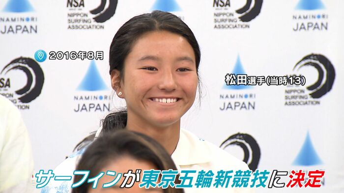 松田選手が中学生の時、東京オリンピックの新競技にサーフィンが追加されると…