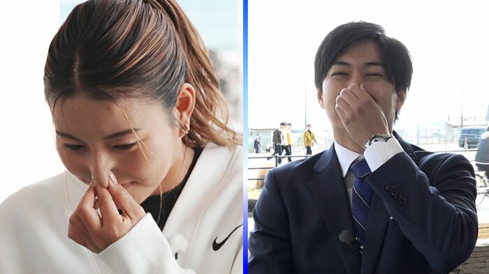 インタビューをする德田総一朗アナウンサーが恐縮ながらも息止め対決を打診してみると、松田選手は快くOK!