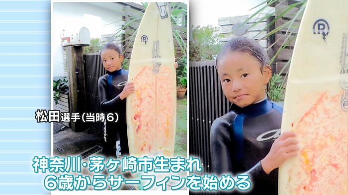 神奈川県茅ヶ崎市で生まれ、6歳からサーフィンを始めた松田選手。