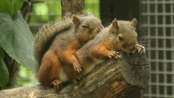 「後ろからギュ~」とっても仲良し ニホンリスたち