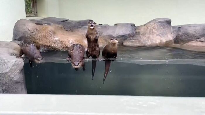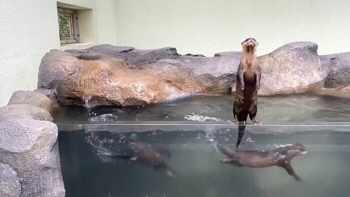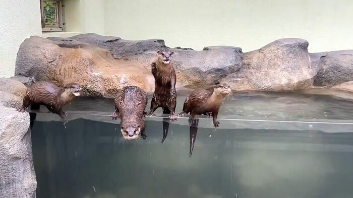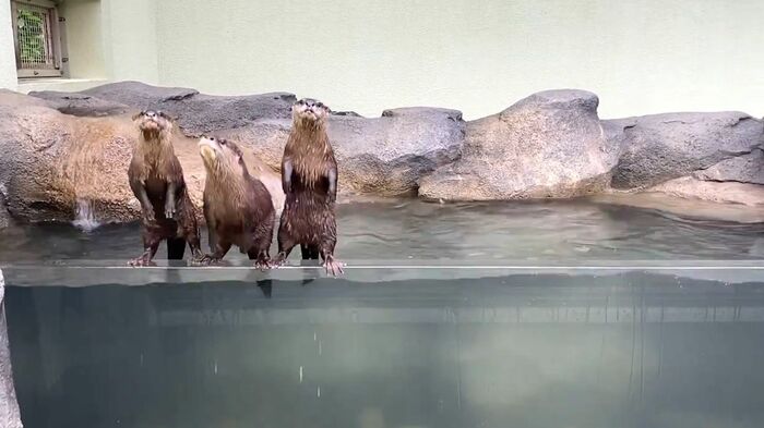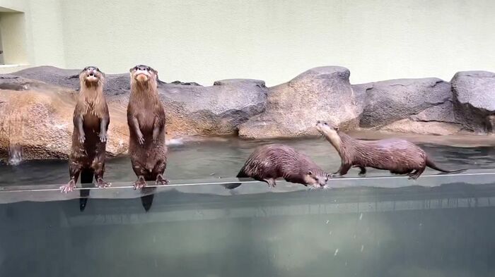 この投稿にSNSでは、「わちゃわちゃがかわいい」や「水で滑って落ちないのが凄い!」などと、コツメカワウソたちが器用な起立ポーズに絶賛する声が寄せられています。