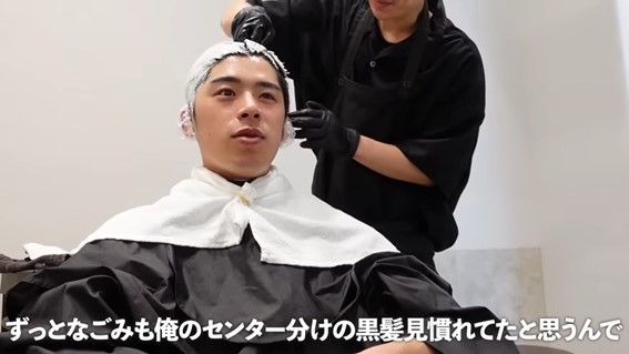 動画の冒頭、こーくんはなごみさんを驚かせるためのサプライズ企画として、2~3年間変えていなかった黒髪センター分けの髪形からイメージチェンジすることを報告。