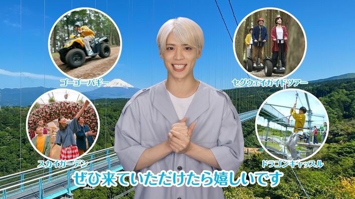 「この度三島スカイウォークのCMに出演させていただくことになりました。三島スカイウォークは現在ビレッジ化を計画中ということで、いろんな施設が盛りだくさんになっております。
