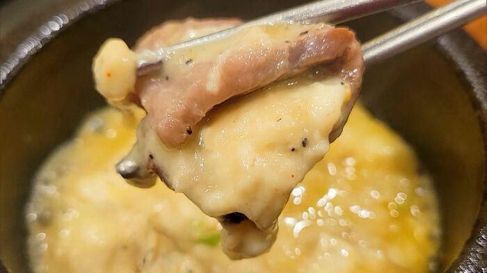 カルビを熱したチーズと絡めて食べると、コクのあるまろやかなチーズがお肉を包み込み、絶妙な味わいを生み出します。