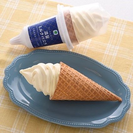 北海道産生クリームとマダガスカル産バニラビーンズシードを使用した濃いミルクバニラ味のワッフルコーンアイス。