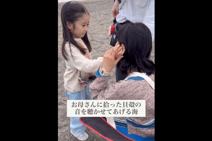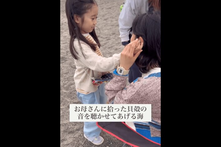 泉谷さんが貝殻から波の音が聞こえると、古川さんに聞かせてあげる様子をおさめたこの動画。母娘の微笑ましい姿に「海に行くと、これやりますよね」「らなちゃんかわいいな」「母娘のやりとりがかわいすぎて永遠にみてられる」「ステキな動画」と、大きな反響が寄せられました。