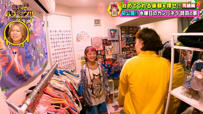 「困っていると聞いたので」という理由で、深夜に足腰げんき教室を受け入れた詩羽さん。自ら自宅をツアーし、ポップな洋服やフィギュアで埋め尽くされた趣味部屋まで案内してくれるという、サービス精神どころか“神”としか言いようのない対応。器の大きさを見せつけました。
